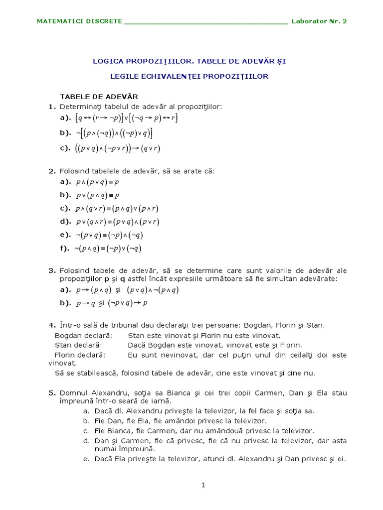 untuk "Sa Se Stabileasca Valoarea De Adevar A Propozitiilor"