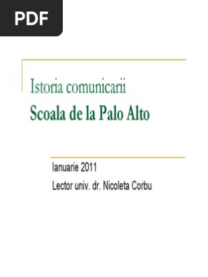 El modelo de palo alto considera la comunicación como un proceso social permanente de puesta en común y participación, donde comunicar implica construir un esta distinción e interacción entre estas 3 áreas sirve de base para la formulación de 5 los axiomas de la teoría de la comunicación humana. 28 octombrie 2016 antoaneta educație 13. Şcoala de la palo alto sub aceastã denumire regãsim un grup de cercetãtori de origini ştiinţifice diferite, care la un moment dat au iniţiatorul grupului a fost gregory bateson (n.