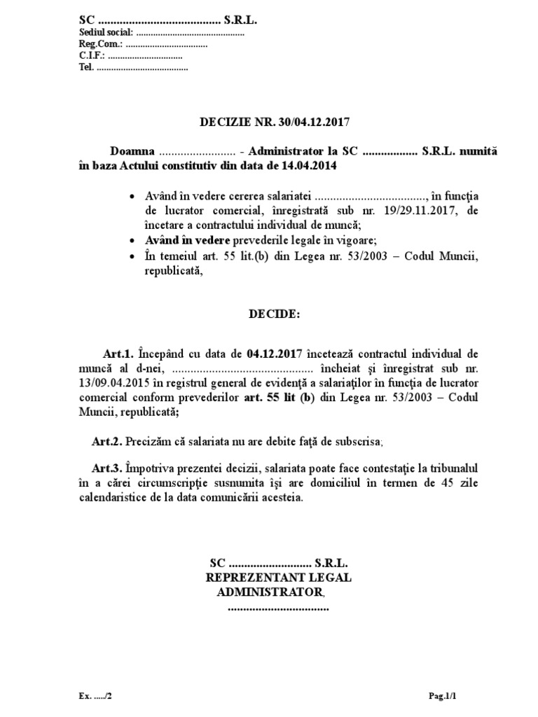 (1) in sensul prezentului cod, prin angajator se intelege persoana fizica sau juridica ce poate, potrivit legii, sa angajeze forta de munca pe baza de contract (2) persoana juridica poate incheia contracte individuale de munca, in calitate de angajator, din momentul dobandirii personalitatii juridice. 31/1990 privind societăţile comerciale, republicată, c.e.c. De drept, ca urmare a acordului părţilor sau ca urmare.