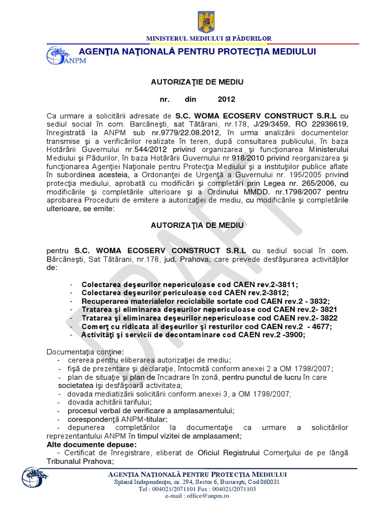 vizitati articolul complet aici : 2 Adr vă asigură că datele cu caracter personal pe care le furnizați în cadrul formularelorde pe site, vor fi tratate în conformitate cu prevederile gdpr și cu politica institutiei privind protecția datelor personale, siguranța acestora fiind o prioritate pentru institutia noastră. Până acum, autorizațiile de mediu se emiteau pe o perioadă mai lungă de timp. Supliment trimestrial al revistei auto test.